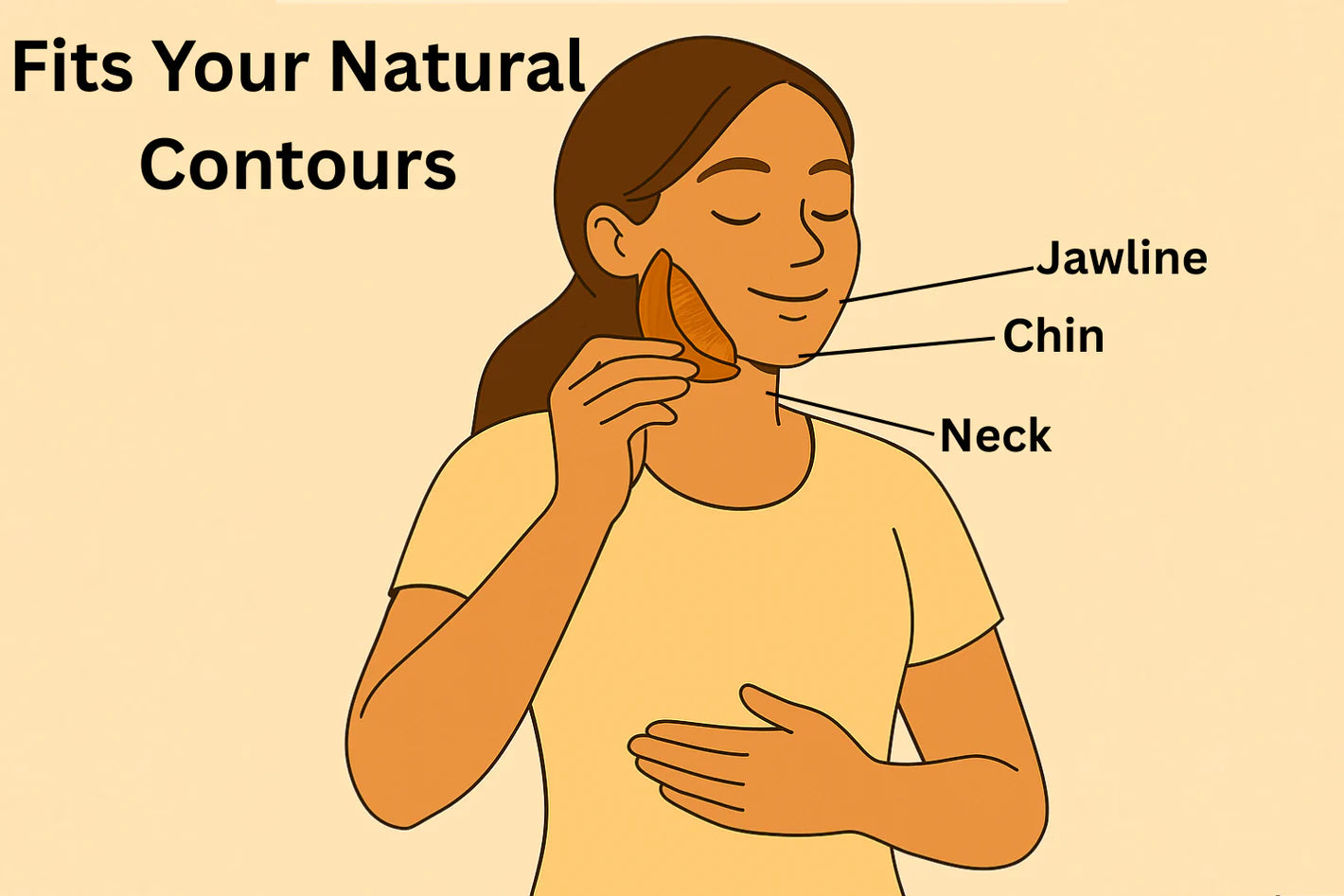 Unlike flat gua sha stones, the arched brush is shaped to follow your jawline, chin, and neck. Targeting exactly where puffiness collects.